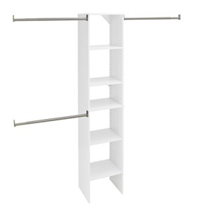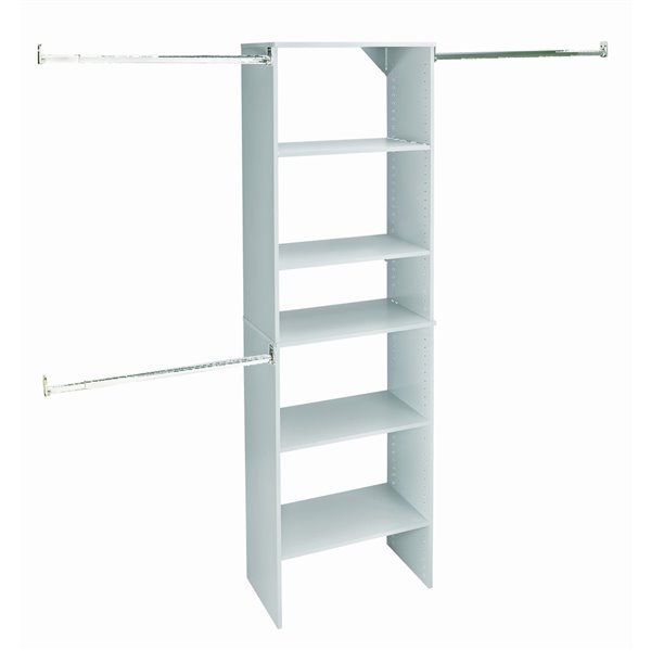 I didn’t want to spend a lot of money on the closet, so I bought the Closet Maid unit from Canadian Tire. its 12-inch closet tower kit that creates up to 5 ft of shelf space and 12 ft of hanging space. It’s easy to adjust rods and shelves.